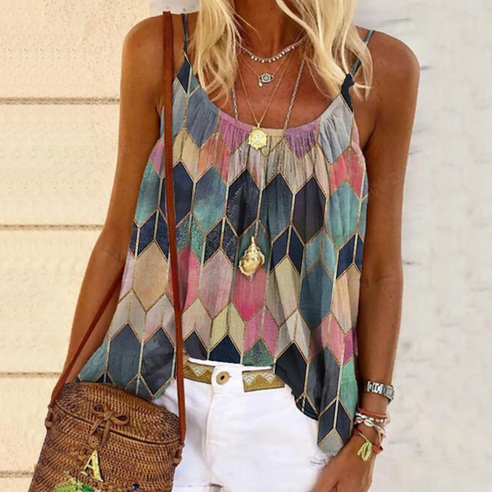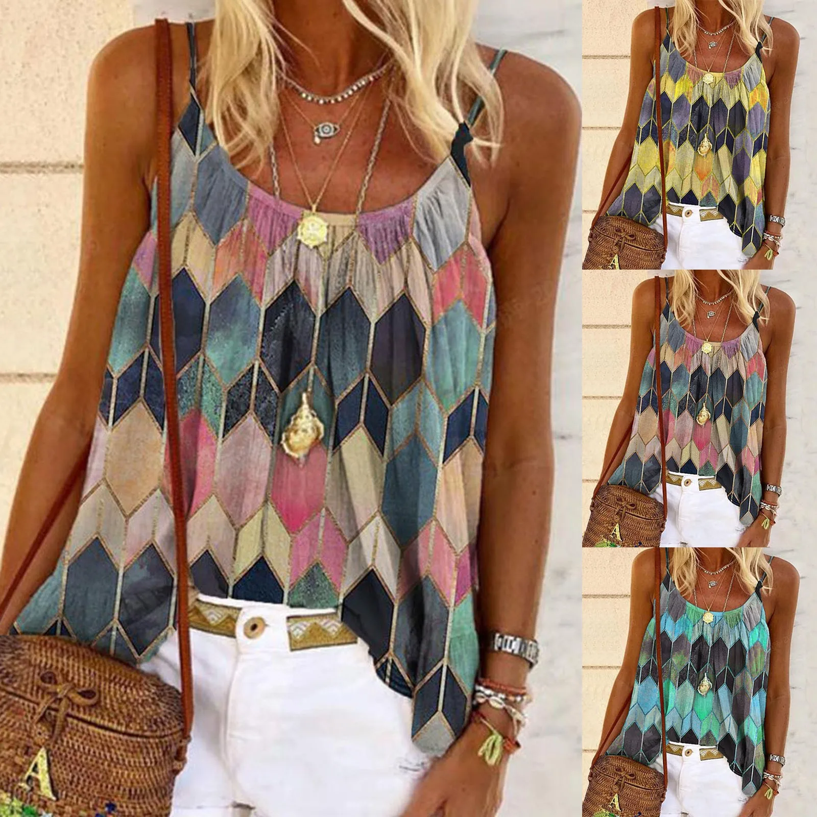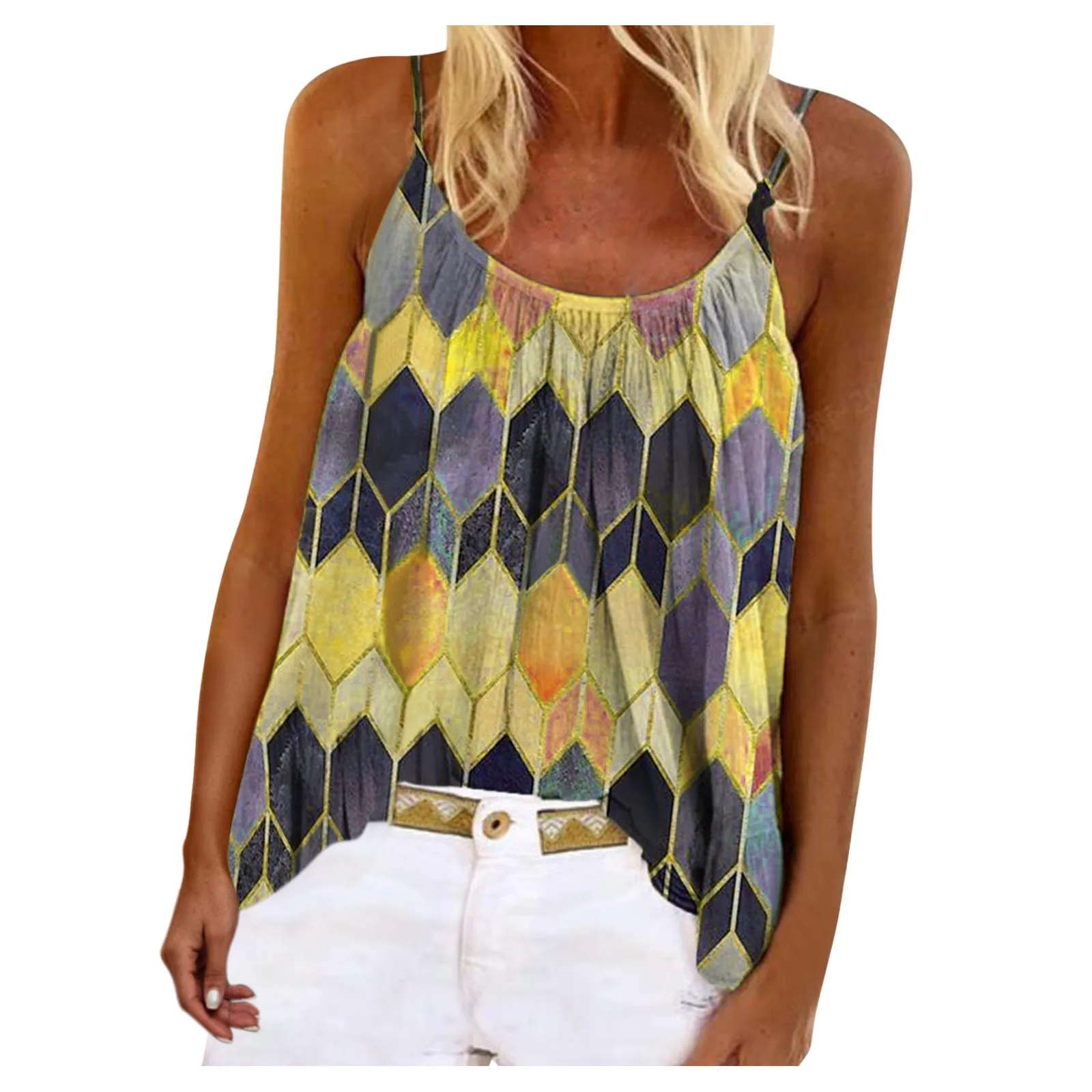 Блузка Женская с принтом, без рукавов, с U-образным вырезом, в стиле Харадзюку, размера плюс, повседневный Топ, элегантная Рубашка, Рубашка Женская, 4 #