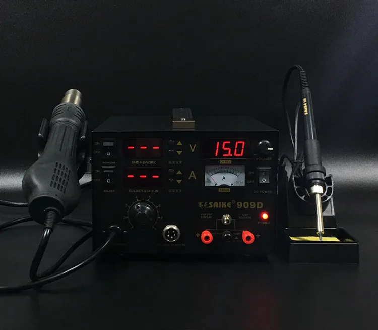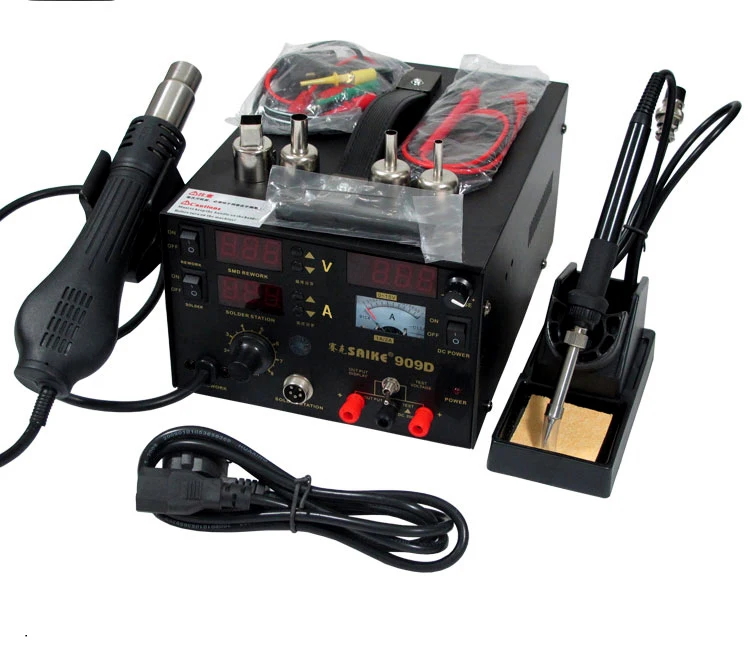 700 Вт паяльник 220 в 110 В станция для пистолета горячего воздуха + паяльник + источник питания постоянного тока 3в1 электрическая наладочная станция Saike 909D