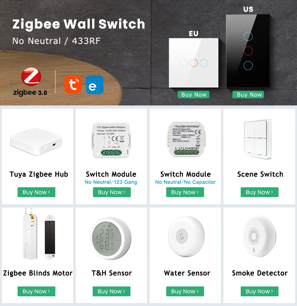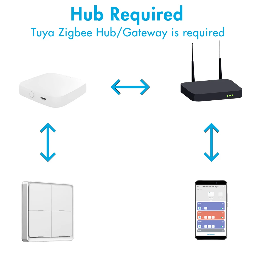 Этот Tuya ZIgbee Scene Switch-это универсальный переключатель, который означает, что он может работать со всеми устройствами tuya zigbee и wifi. Работает только тогда, когда он соединен с tuya zigbee hub/gateway, другими словами, требуется zigbee hub/gateway.