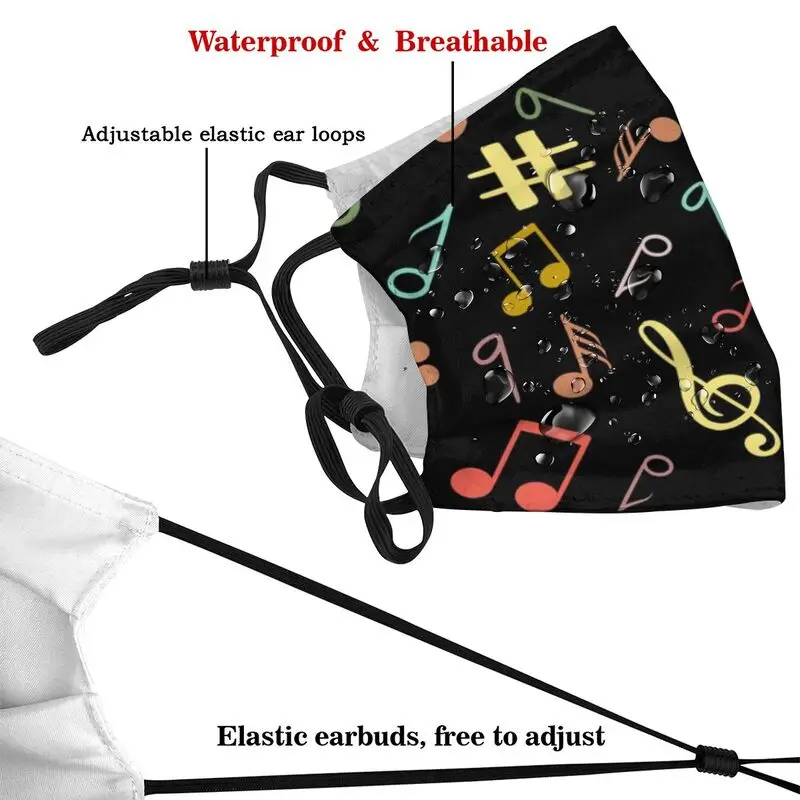 Модные Красочные Музыкальные ноты уход за кожей лица маска для мужчин и женщин против дымки маски с фильтрами защитный респиратор одноразовые рот муфельная печь