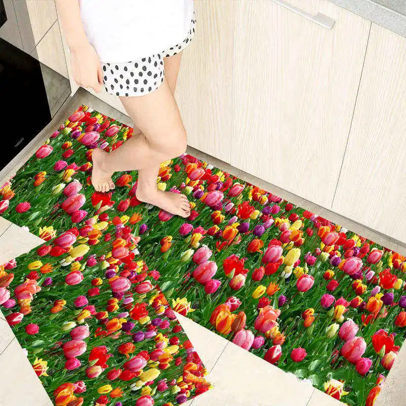 Мраморный Кухонный коврик, Впитывающий Коврик для входной двери, с 3D цветочным узором, для спальни, прихожей, длинный напольный коврик, Противоскользящий коврик