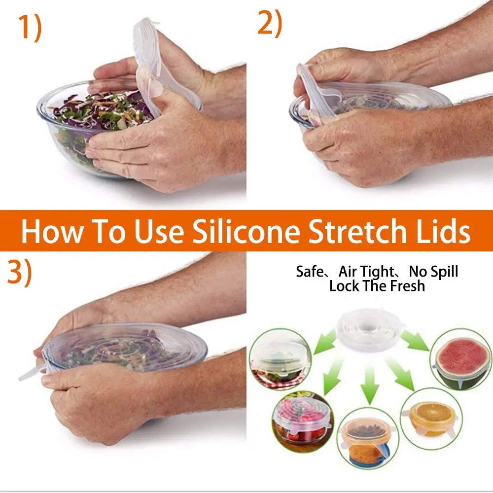 Набор из 6 спецификаций, может отвечать ежедневным потребностям, может быть дезинфекция при высоких температурах, квадратная коробка для обеда также может использоваться, также может использоваться для фруктов, холодильник не имеет запаха, запечатан, может использоваться повторно, безопасный пищевой силикон, микроволновое Отопление