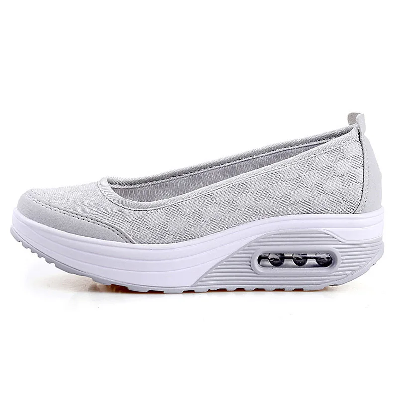 Женские кроссовки на плоской платформе, Повседневные Удобные однотонные черные кроссовки на воздушной подушке, без шнуровки, лето-осень 2021