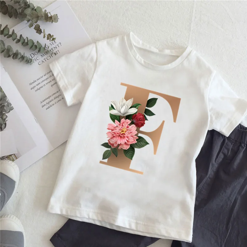 Футболка для девочек, с принтом в виде цветов на английском алфавите, в стиле Харадзюку