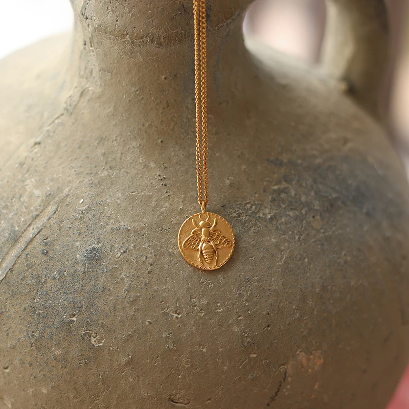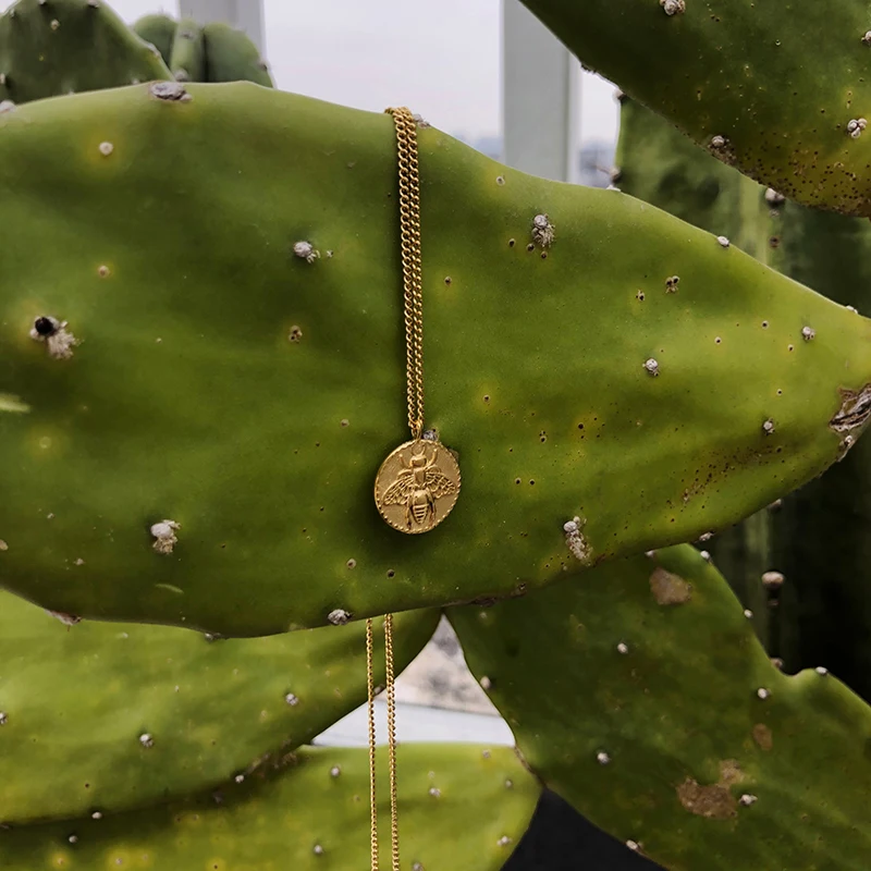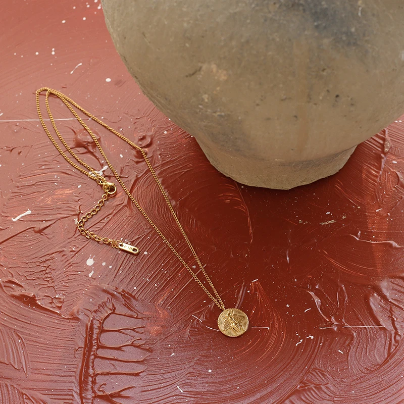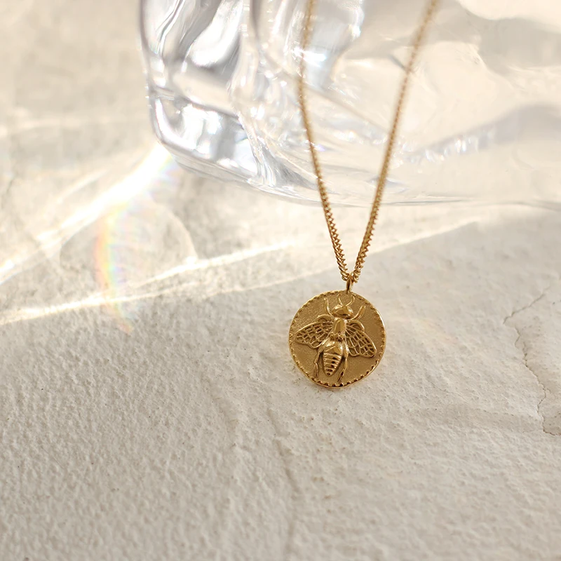 Новый дизайн модные не тускнеет из нержавеющей стали, покрытой 18k позолоченный Малый тиснение монета золотое украшение на шею с пчела ожерелье для женщин