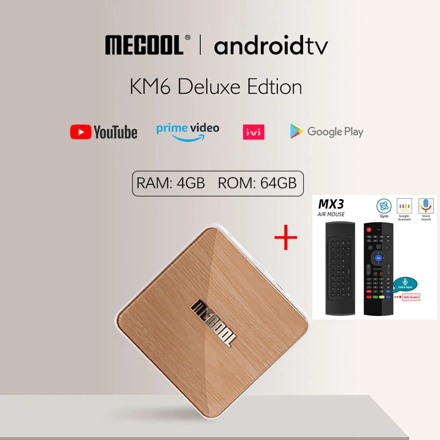 ТВ-приставка Mecool KM6 deluxe edition S905X4, Android 10, 4 ГБ, 64 ГБ, Wi-Fi, 6, сертификат Google, AV1 BT5.0, 1000M, ТВ-приставка Mecool KM6