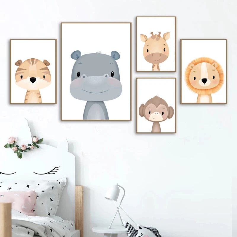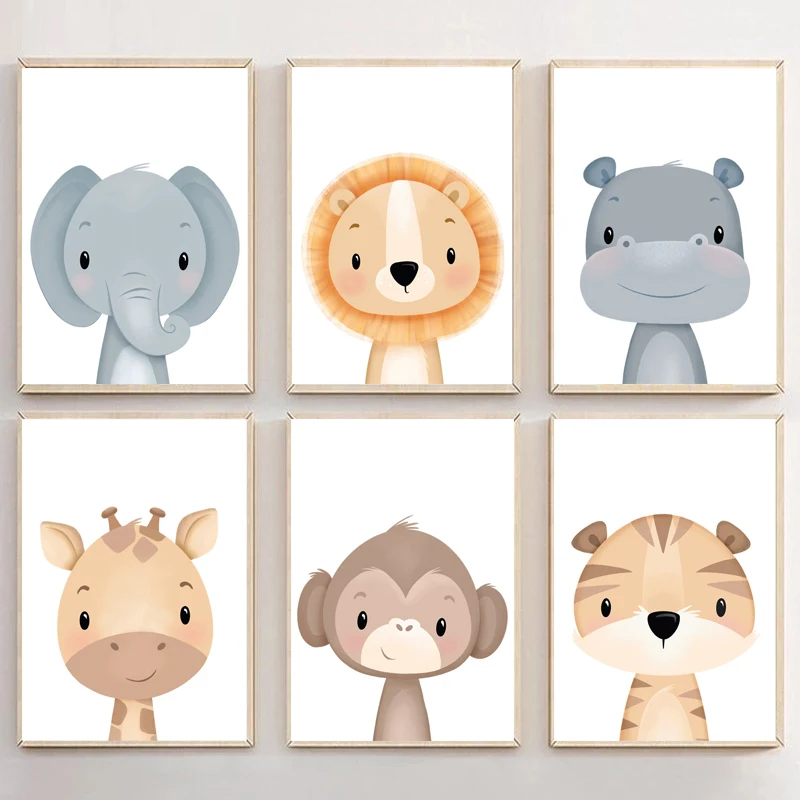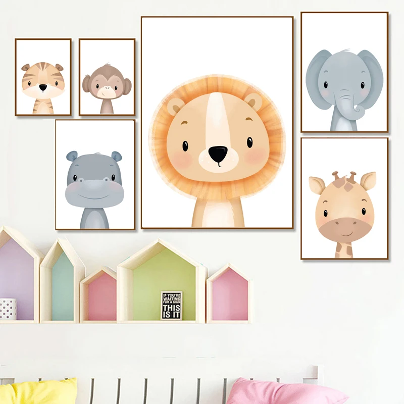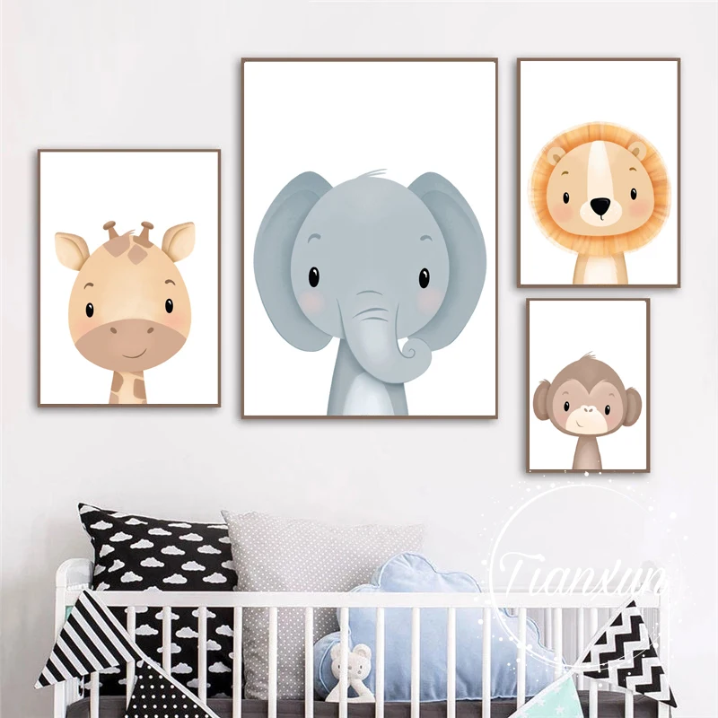Милые Мультяшные Животные декоративные картины лев ребенок слон Детская комната Детский сад холст картина настенное Искусство Декор детской комнаты