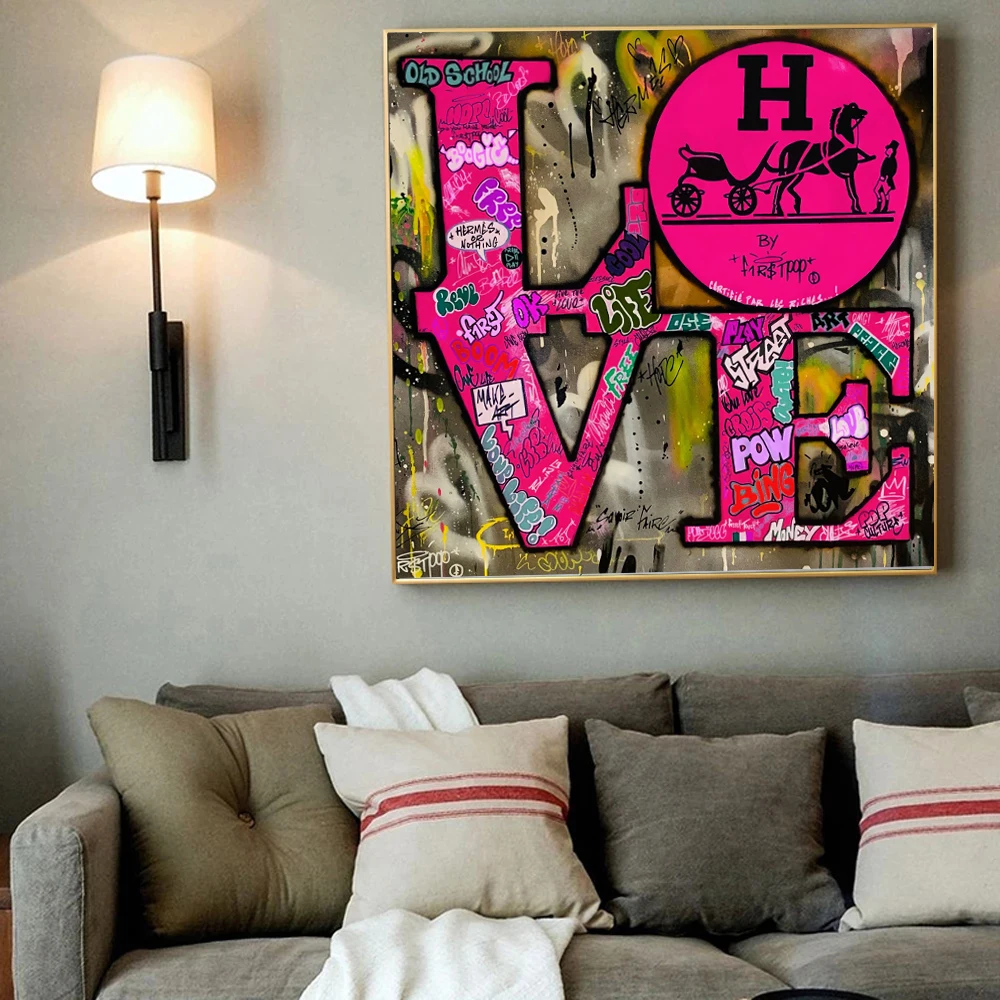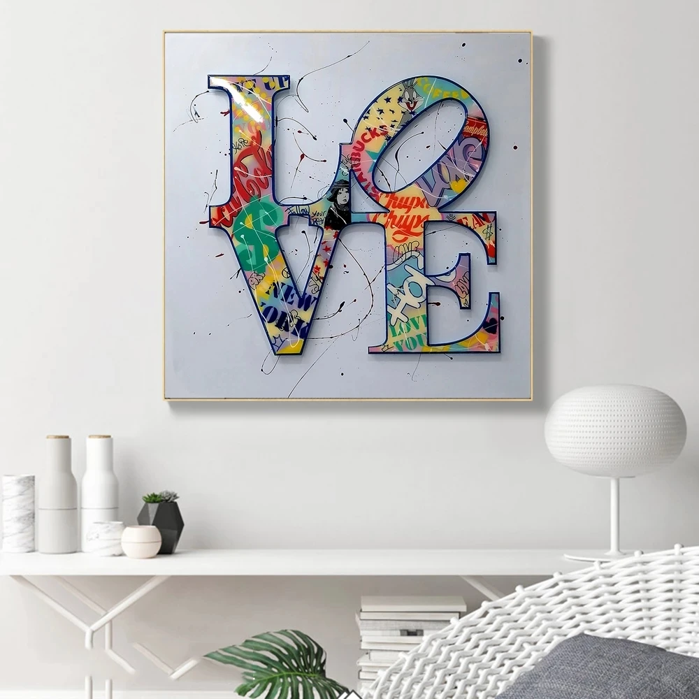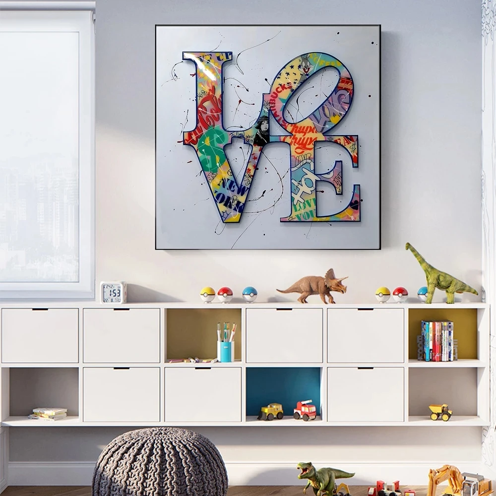 Граффити, красочные буквы, любовь, искусство, холст, принт, абстрак...
