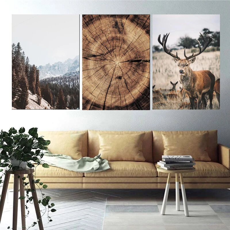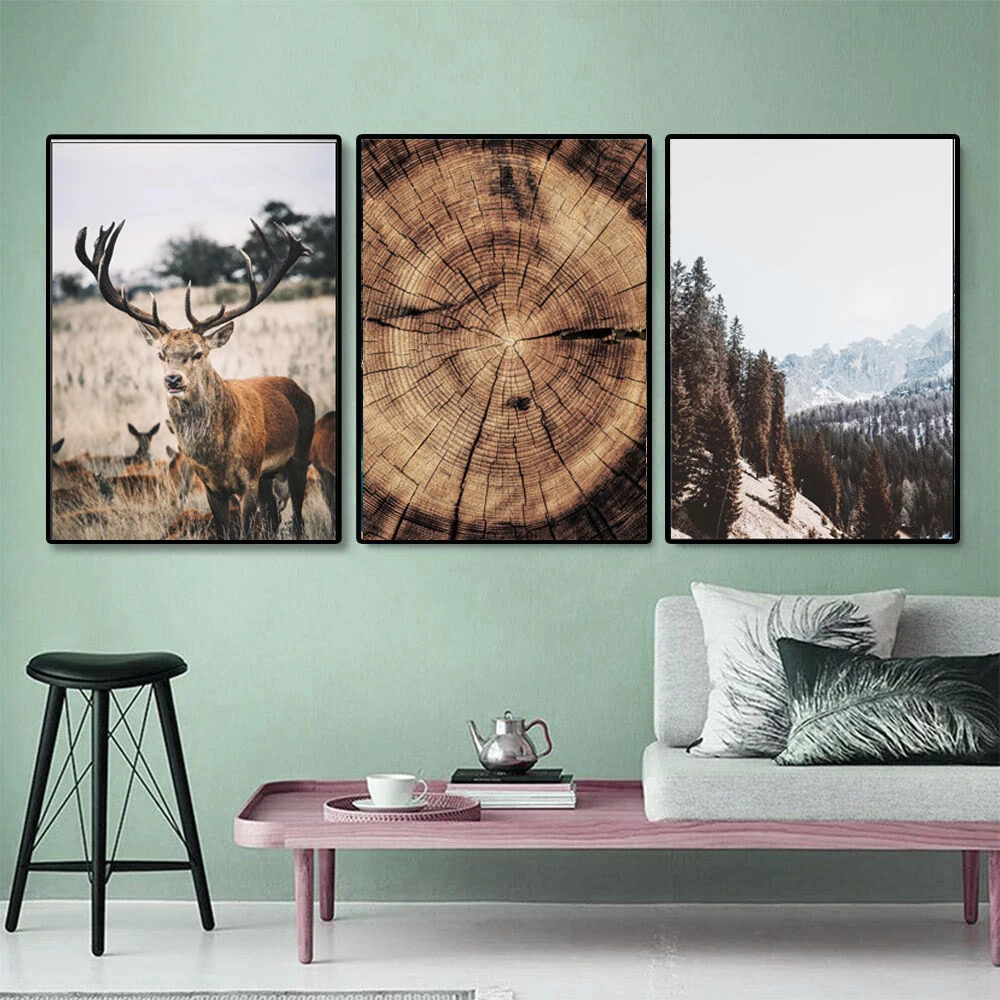 Горный пейзаж животных Картина с оленем из натурального дерева Рост кольцо плакат в скандинавском стиле домашний Декор стены искусства холст для живописи