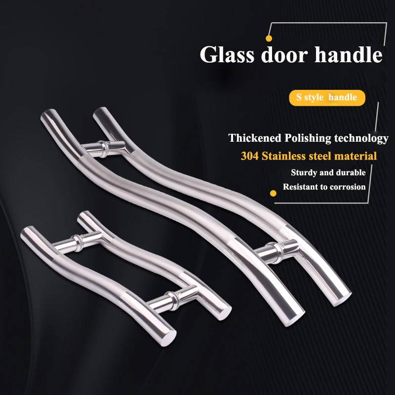 Дверная ручка типа S, стеклянная дверная ручка, стеклянная дверь, деревянная дверь, материал из нержавеющей стали, дверная фурнитура, дверная фурнитура из стекла