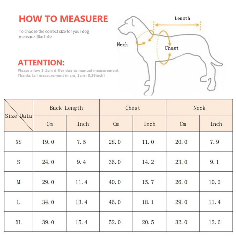 1. Пожалуйста, проверьте вашего питомца замеры изделий сделаны вручную, поэтому убедитесь в том, что одежда подходит для домашних животных перед тем, как вы заказываете (1 дюйм = 2,54 см)