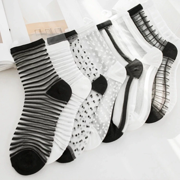 Носки женские кружевные прозрачные, модные пикантные сетчатые, прозрачные шелковые, в сеточку, черные белые, крутые носки высокого качества, на лето
