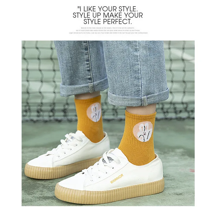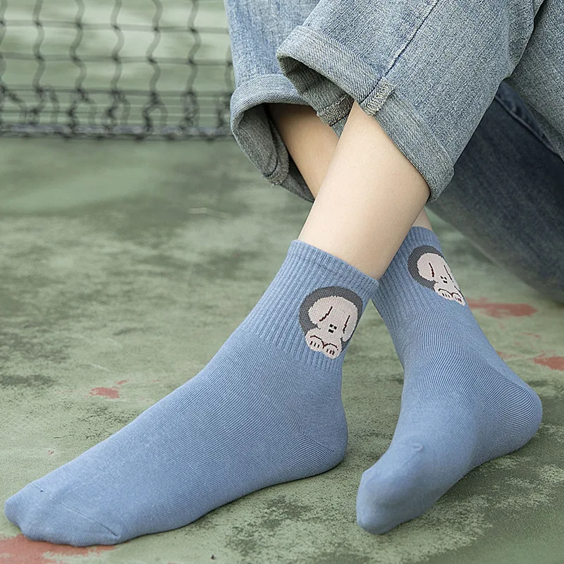 Anewmorn Kawaiiженские носки с рисунками животных из мультфильмов Harajuku, хлопковые Повседневные Дышащие носки в корейском студенческом стиле, 4 сезона, женские носки