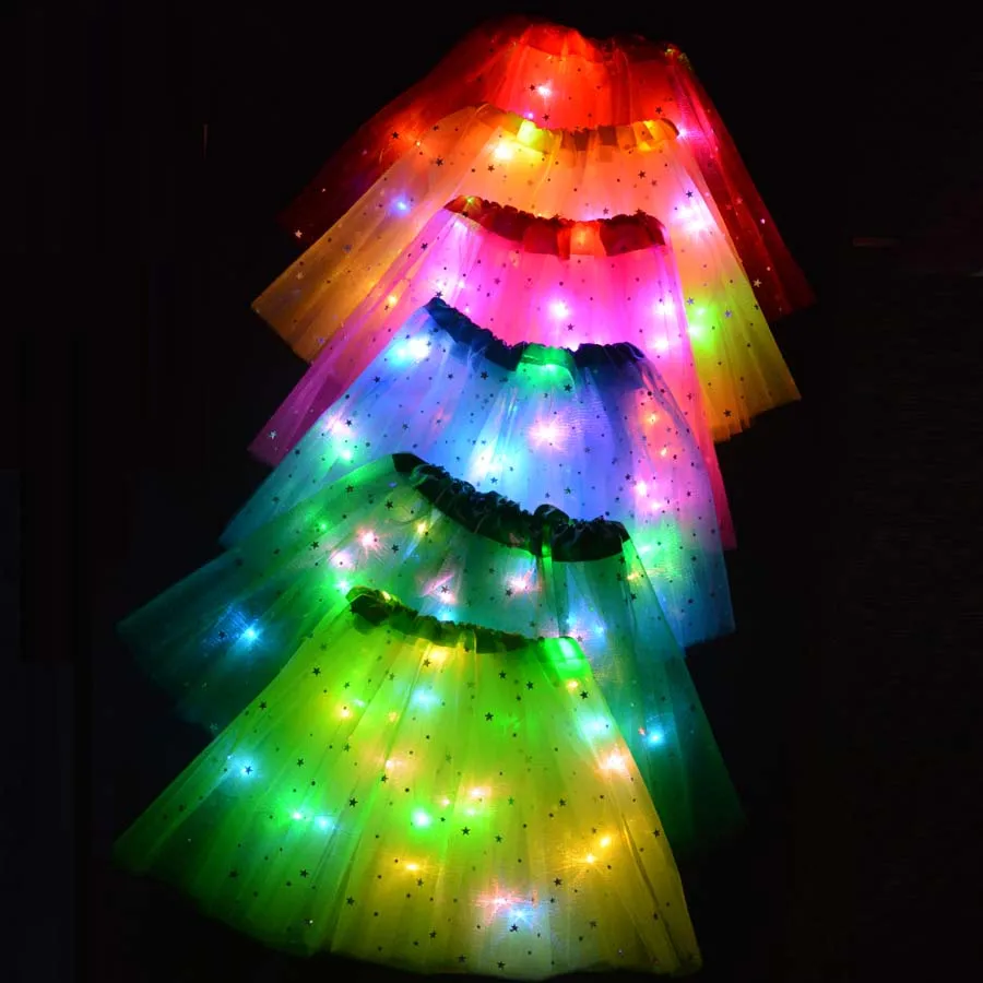 Талия: 38 см (может растягиваться до 70 см). Длина юбки: около 28 см. Один размер подходит для детей 2-7 лет или подходит для роста 90-130 см. Светильник цвета: несколько цветов и волшебные палочки: питание от аккумуляторов butoon (в комплекте и замене) светильник-пачка режим: устойчивый, питание от 1 батарейки (в комплекте и замена)