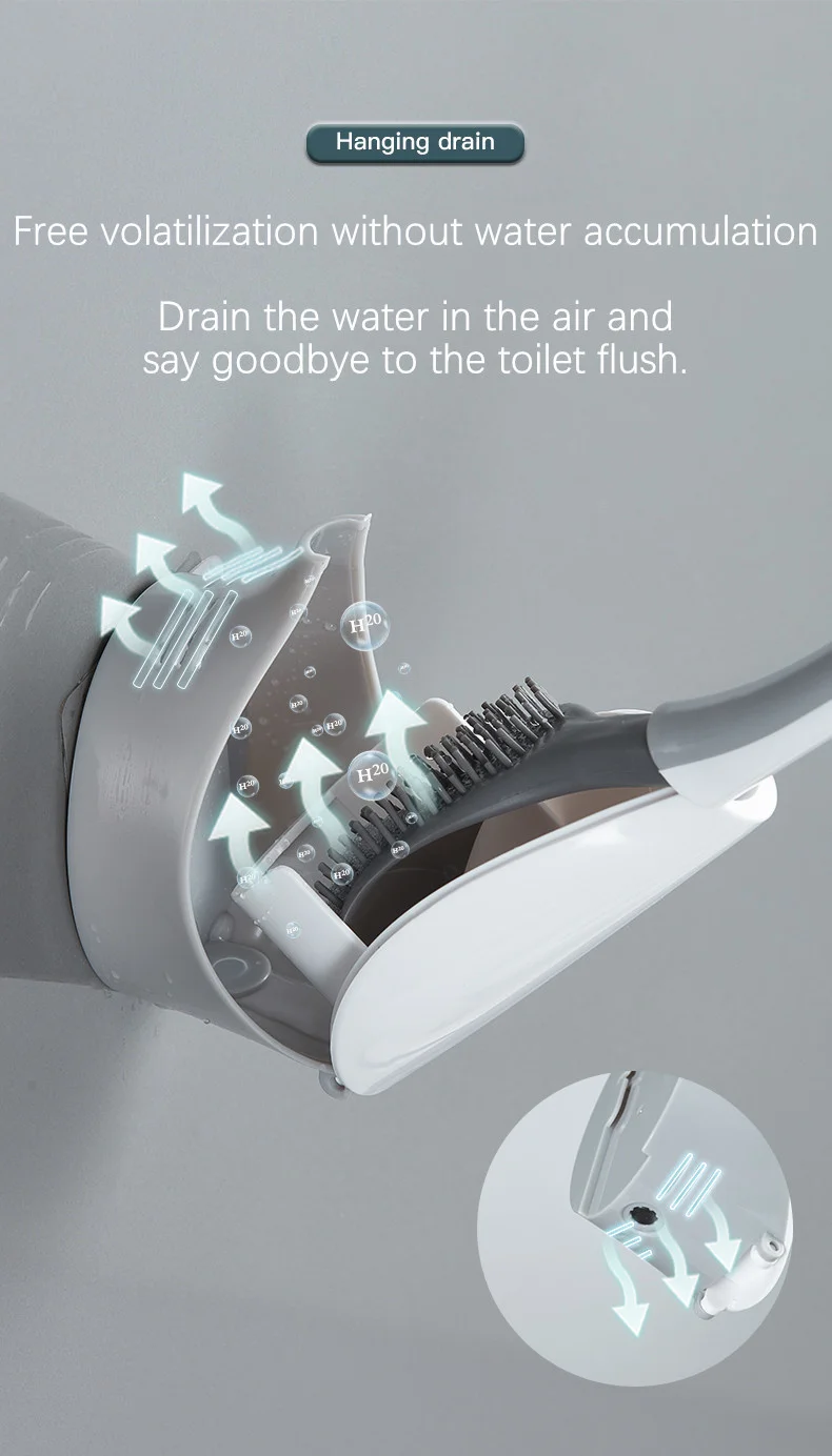 Щетка для унитаза, настенный гибкий держатель с плоской головкой и мягкой силиконовой щетиной, быстросохнущий, L1