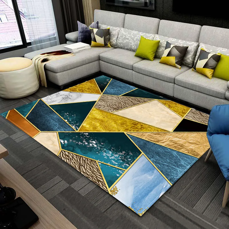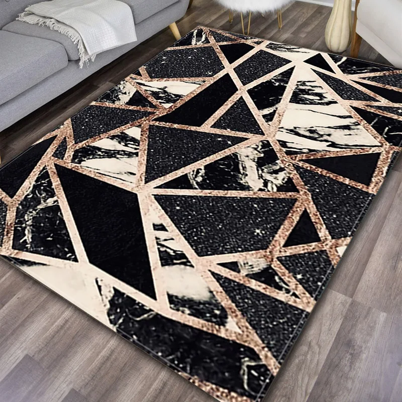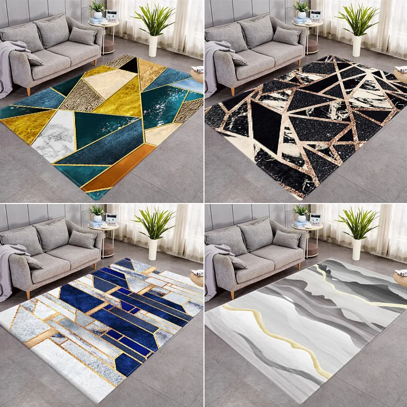 Новый скандинавский светлый роскошный простой коврик для спальни, гостиной, бархатный нескользящий 3D-коврик с геометрическим принтом и кристаллами