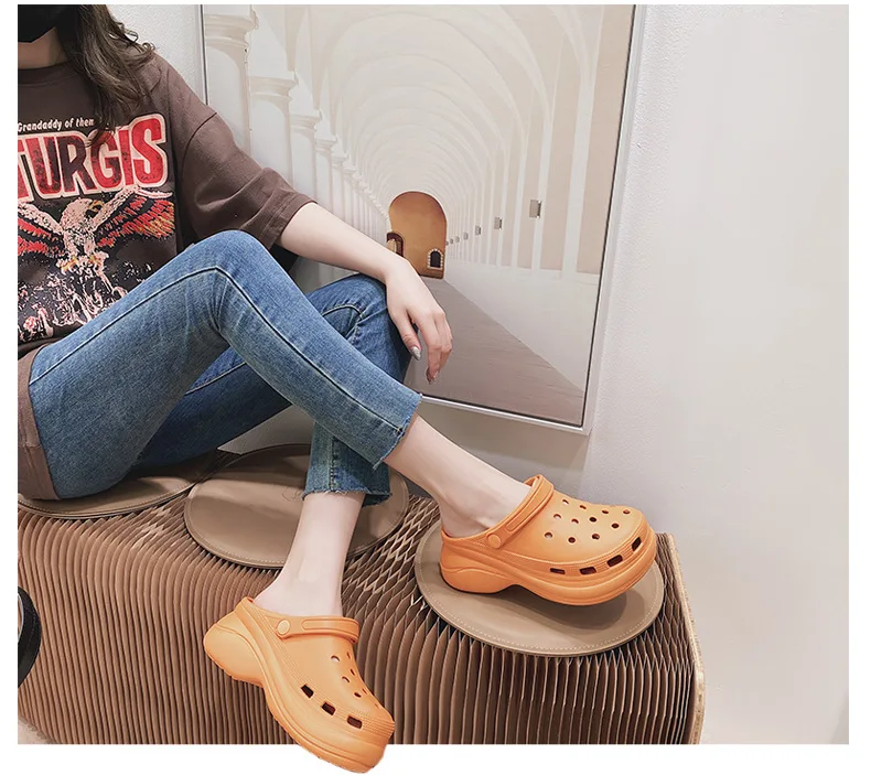 Сандалии женские летние на платформе, садовые Кроксы, пляжные тапоч...