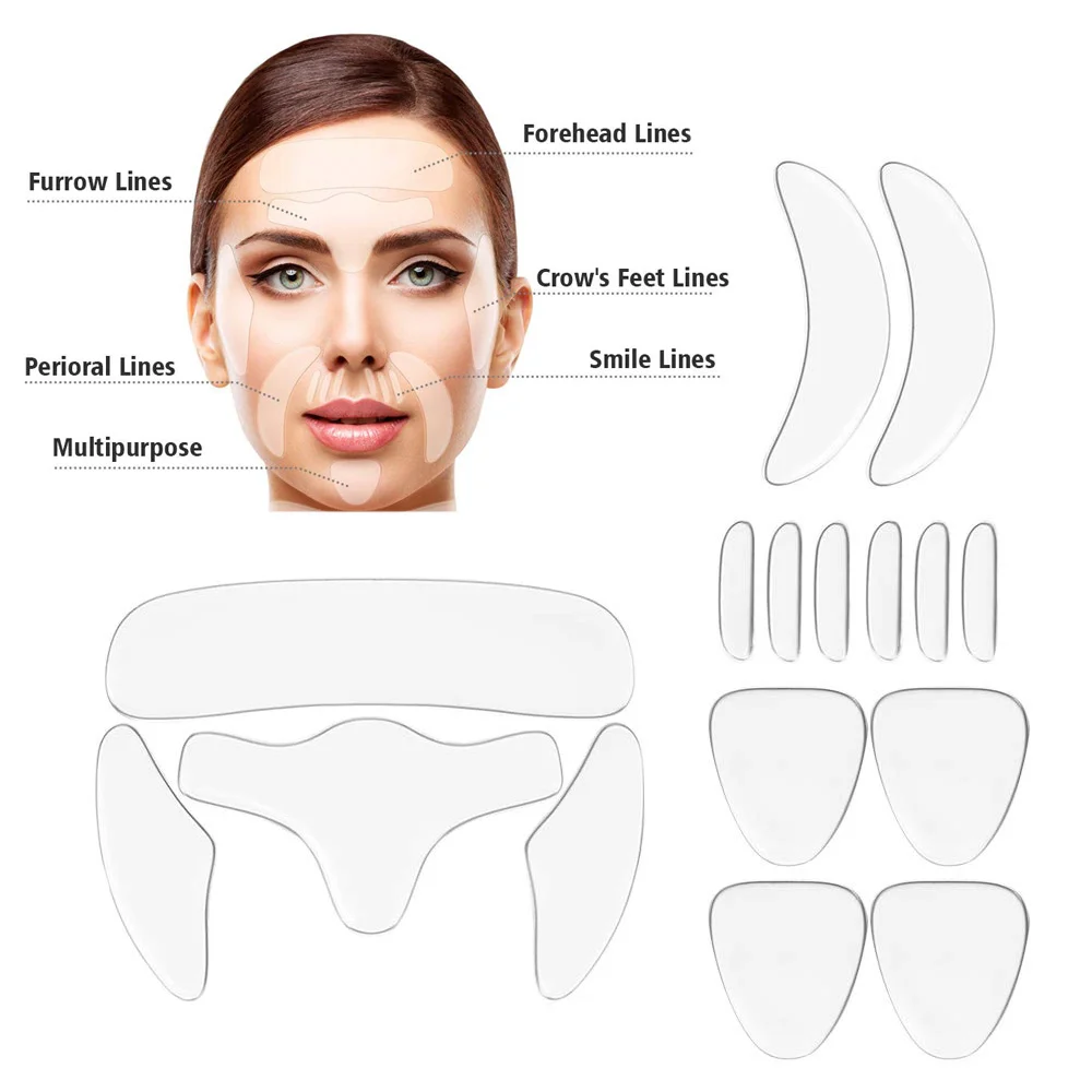 16 шт.компл. многоразовые силиконовые стикеры против морщин снятие наклейка лица лба шеи глаз против морщин старения кожи лифтинг патчи для ухода