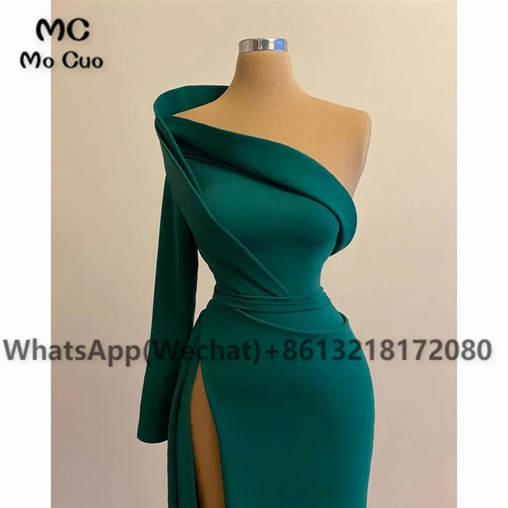 Женское вечернее платье с одним открытым плечом, длинное эластичное атласное платье с высоким разрезом, платье для выпускного вечера, 2021