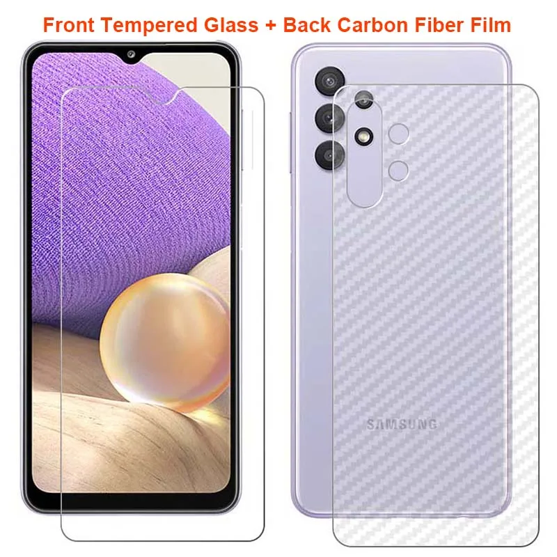 Для Samsung Galaxy A32 5G / 4G 1 комплект = мягкая задняя пленка из углеродного волокна + ультратонкое закаленное стекло передняя защита экрана