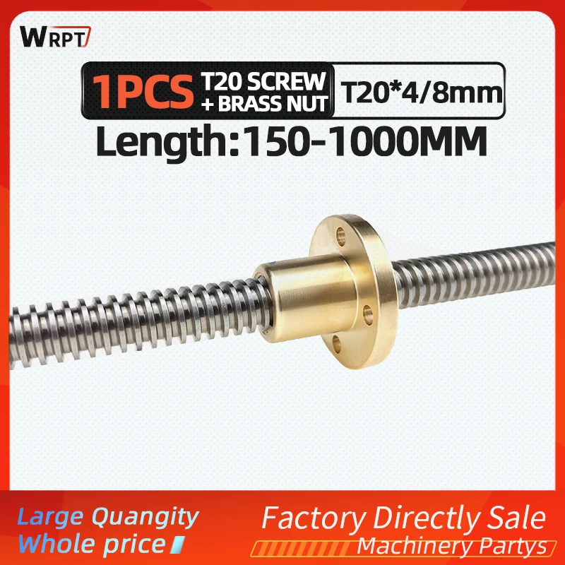 CNC 3D принтер 1 шт. T20 трапециевидный стержень, ведущий винт, резьба 20 мм lead48 мм с латунной гайкой, L = 150 мм-1000 мм