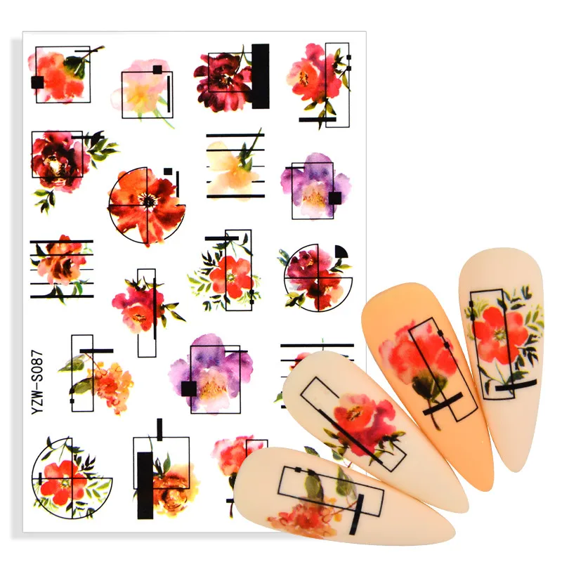 Водные Наклейки для ногтей, 1 лист, Геометрические линии, Весенняя простая тема, цветочные листья, водяные знаки, стикер, украшение для нейл-арта