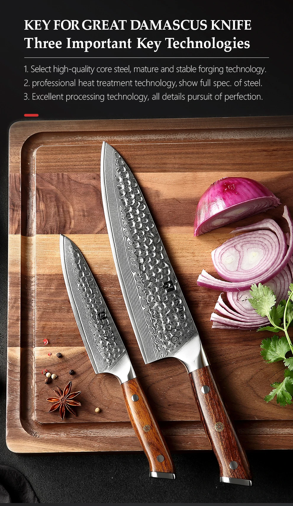 Набор ножей из дамасской стали XINZUO Yu Series 2 шт.