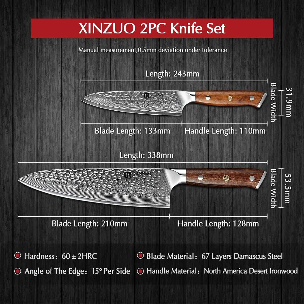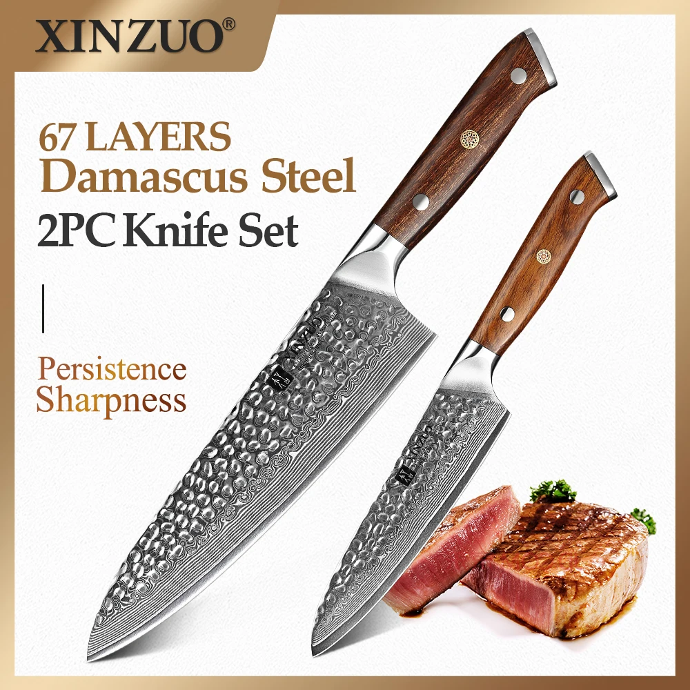 Набор кухонных ножей XINZUO, 2 шт., ручка из железного дерева, японский профессиональный поварской нож vg10, новейший кухонный нож из дамасской стали