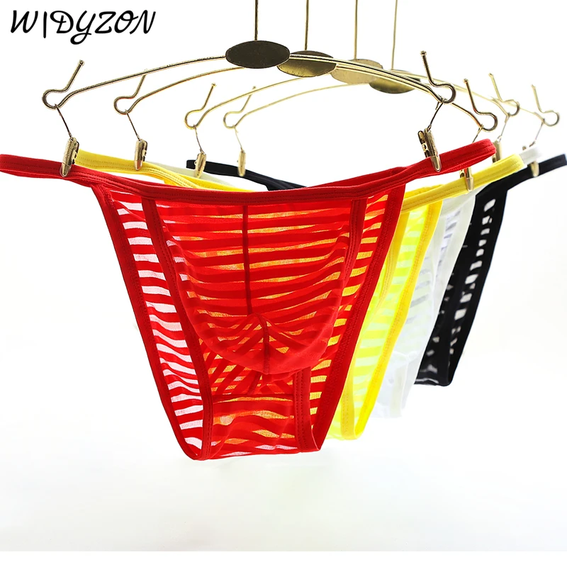 WIDYZON, мужское нижнее белье, сексуальные трусы, прозрачные, в полоску, Cueca Masculina, низкая талия
