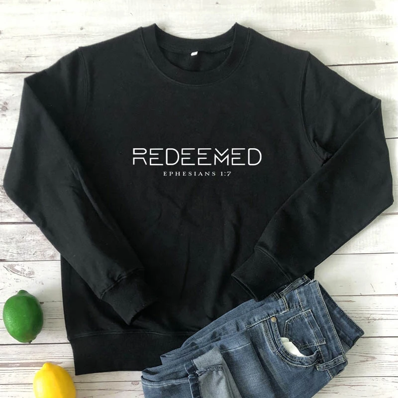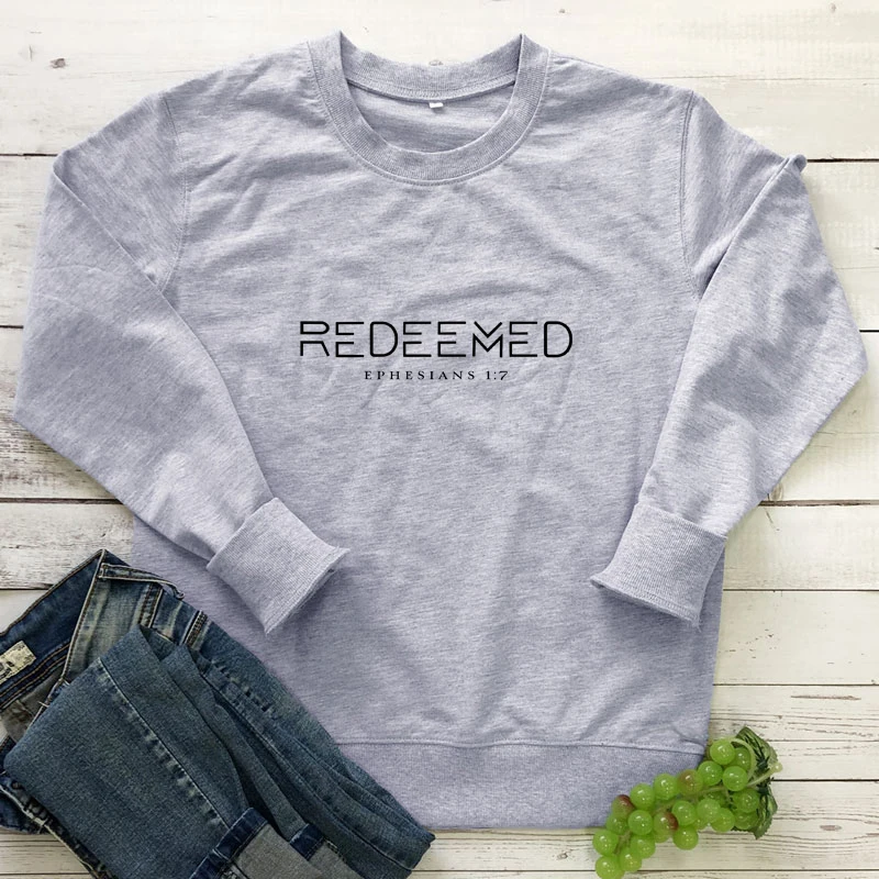Обменять Еф 1:7 Толстовка повседневное женское платье с длинным рукавом стих из Христианской Библии пуловеры католический религия греческие кофты
