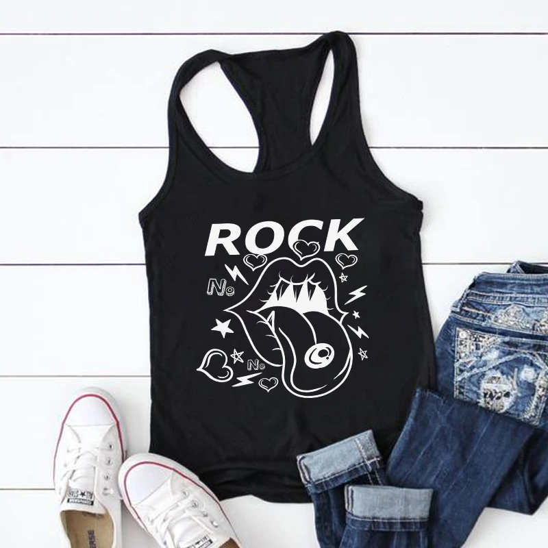 2021 повседневная одежда с рок-принтом, летние майки без рукавов, свободные топы в стиле Харадзюку, топы для женщин y2k, женские майки, топы