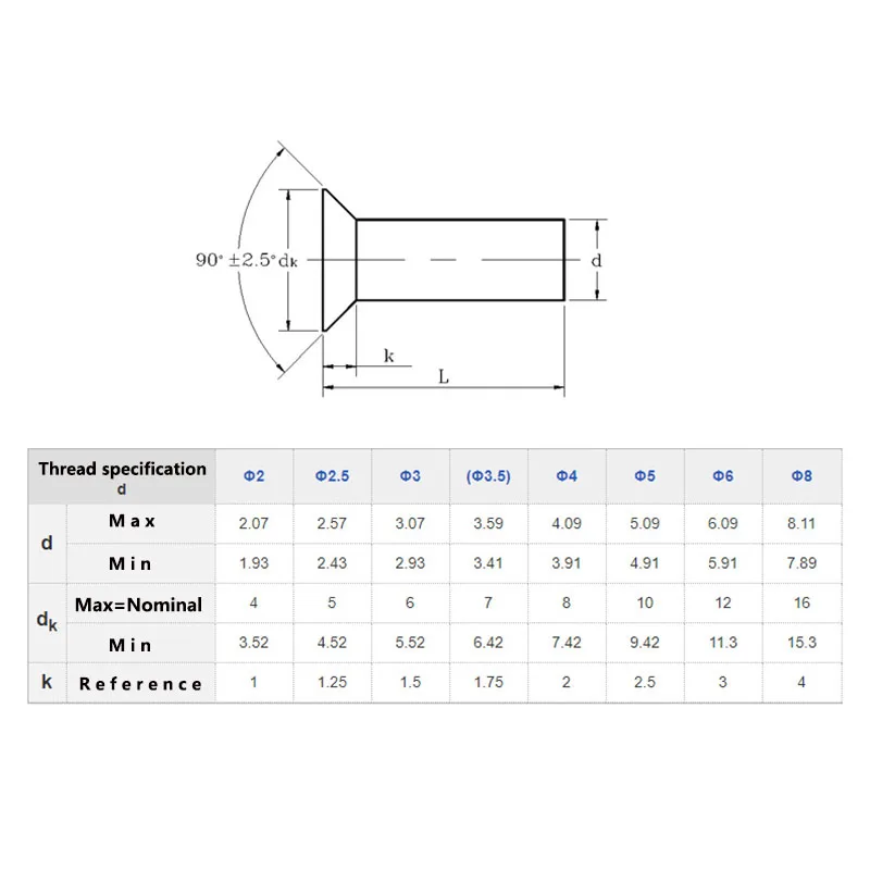 Медные потайные Твердые заклепки GB869 M2 M3 M4 M5 M6 M8 DIN661