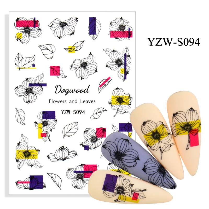 1 лист цветы, геометрическая форма ногтей Водные Наклейки на весну ...