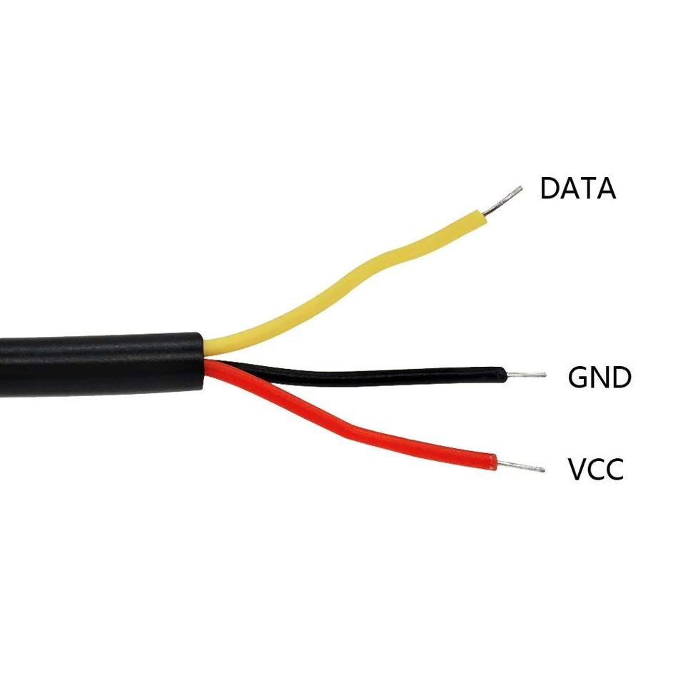 Выходные провода: желтый (VCC), красный (DATA), черный (GND)