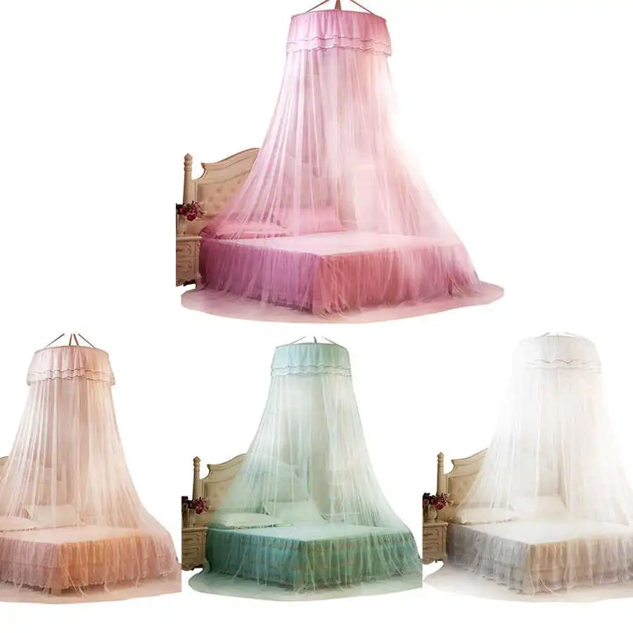 Складная подвесная домашняя москитная сетка, дышащая сетка в стиле принцессы, Круглый балдахин кружева, москитная сетка, занавеска для кровати