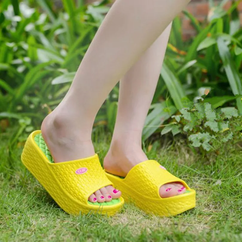 Тапки на танкетке с высоким каблуком для женщин, летние пляжные тап...