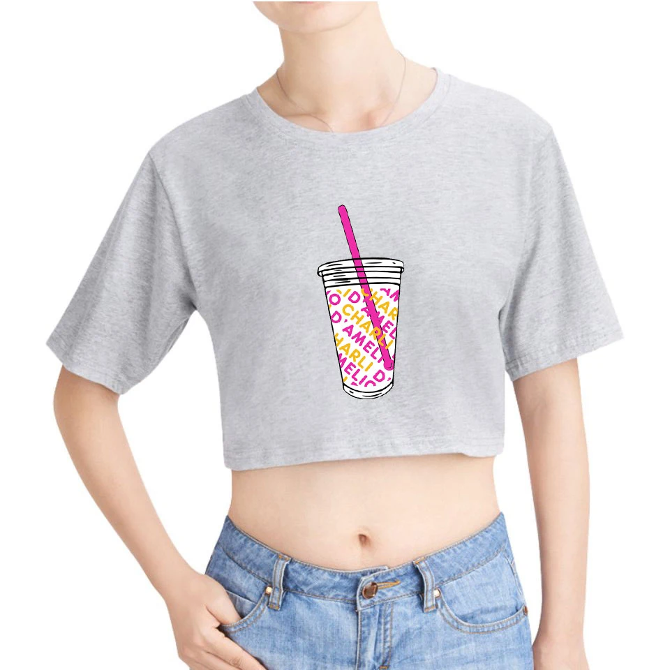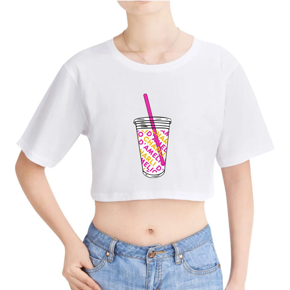 Новинка, футболка с брызгами кофе и льдом, футболка для девушек, сексуальная, Charli damelio merch, укороченный топ с круглым вырезом, Короткие футболки, футболки для подростков