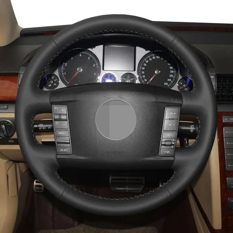 Для Volkswagen VW Touareg Phaeton 2002 2003 2004 2005 2006-2008 2009 2010 Черный чехол рулевого колеса автомобиля из натуральной кожи
