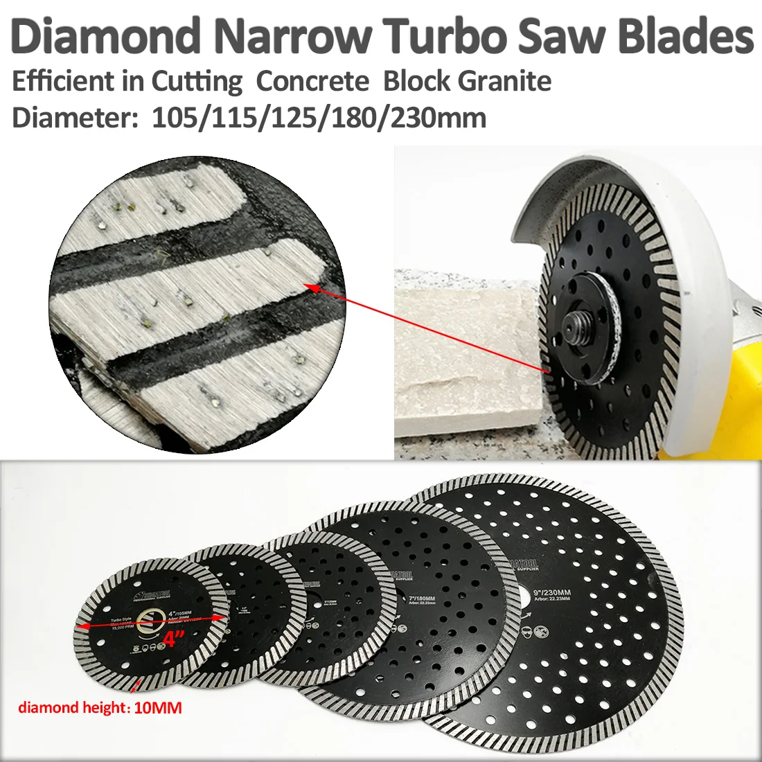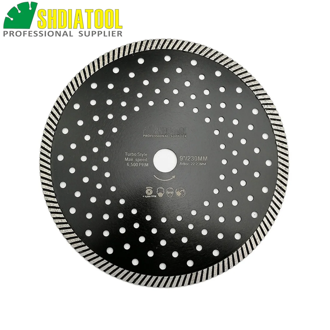 1 шт алмазные турборежущие лезвия с несколькими отверстиямиСпецификация:Диаметр 115 мм/4,5 "высота сегмента 10 мм толщина сегментов 2,0-2,1 мм отверстие: 22,23 мм/(7/8")Диаметр 125 мм/5 "высота сегмента 10 мм толщина сегментов 2,0-2,1 мм отверстие: 22,23 мм/(7/8")Диаметр 180 мм/7 "высота сегмента 10 мм толщина сегментов 2,3-2,4 мм отверстие: 22,23 мм/(7/8")Диаметр 230 мм/9 "высота сегмента 10 мм толщина сегментов 2,5-2,6 мм отверстие: 22,23 мм/(7/8")Количество:1 шт.Применение:Эффективен в резке гранита мрамора бетонной кладкиОсобенность: