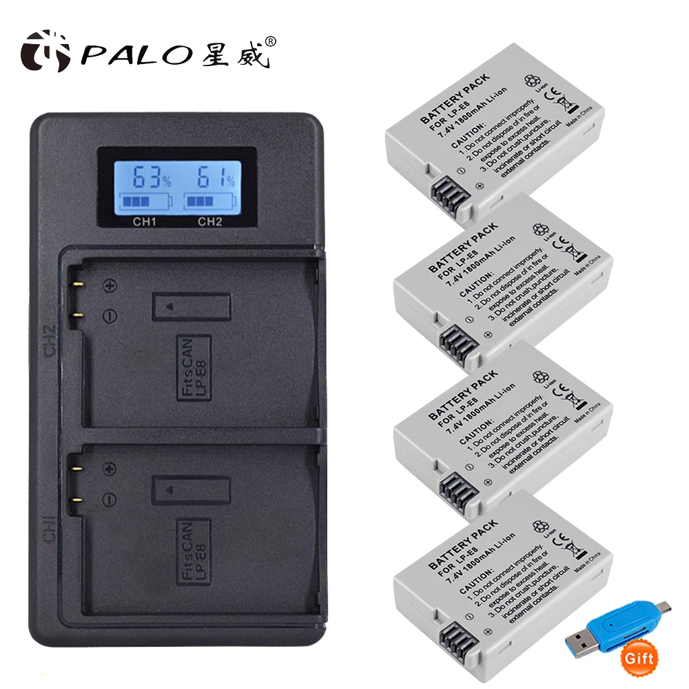 Аккумуляторы LP-E8 LPE8 LP E8, 7,4 В, 1800 мАч и зарядное устройство с ЖК-дисплеем для Canon EOS 550D 600D 650D 700D X4 X5 X6i X7i T2i T3i