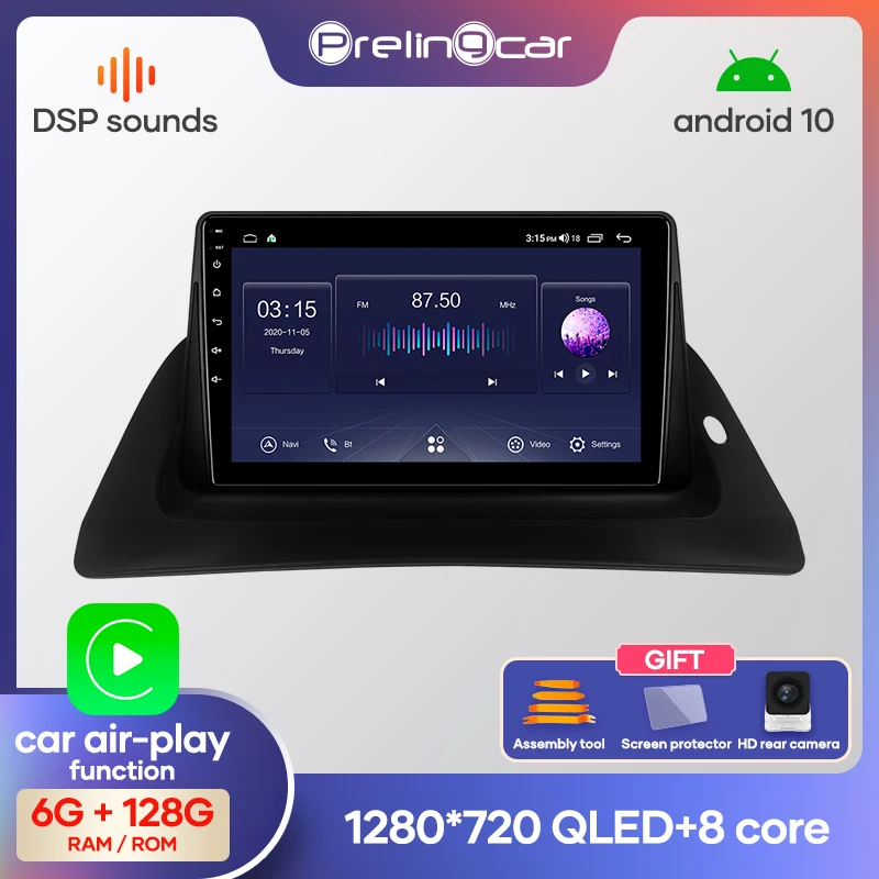 Автомагнитола Prelingcar, 2 Din, Android 10, без DVD, мультимедийный видеоплеер, GPS-навигация для Renault kangoo, Восьмиядерный процессор DSP IPS, 4 ГБ, 64 ГБ