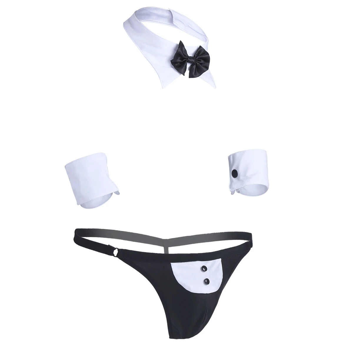 3 шт., мужское официанта нижнее белье костюм с открытой спиной смокинг стринги нижнее бельё для девочек с галстуком-бабочкой, с воротником и Браслеты Косплэй эротический комплект