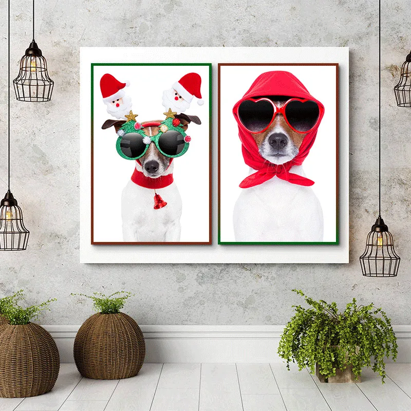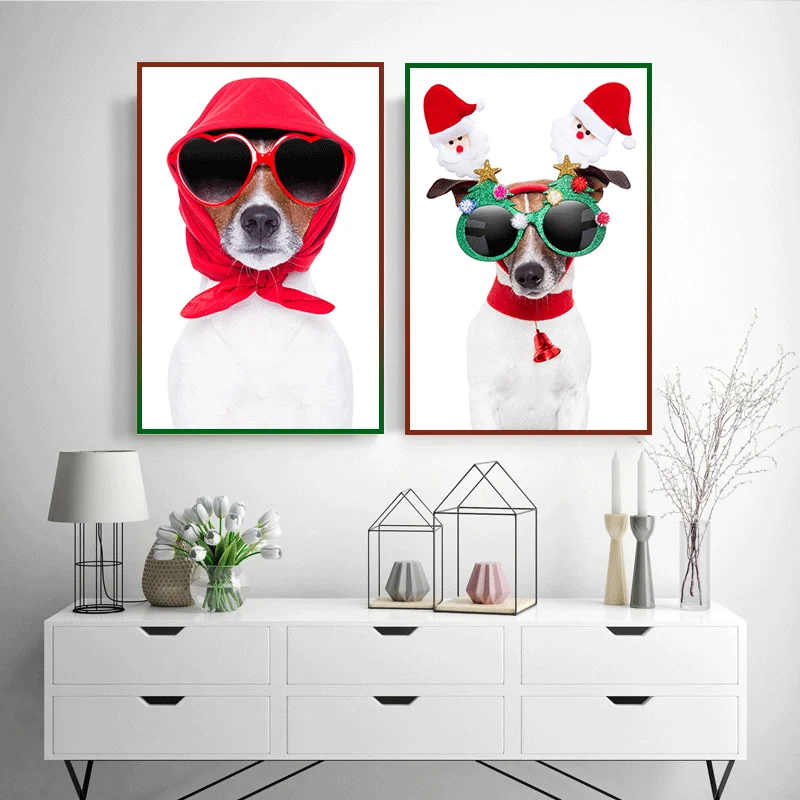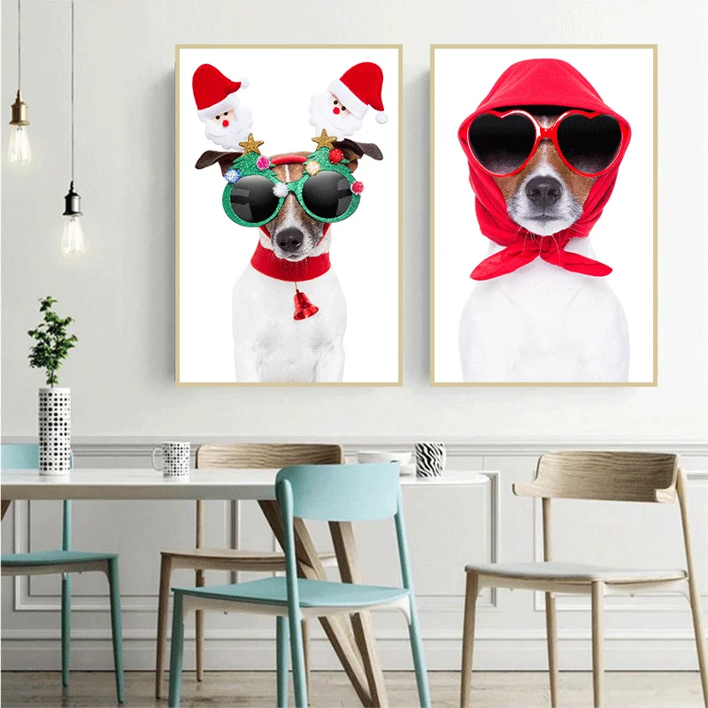 Картина на холсте с изображением милой собаки для празднования Рождества, Постер для гостиной, детской комнаты, домашний декор, Настенная картина, бесплатная доставка