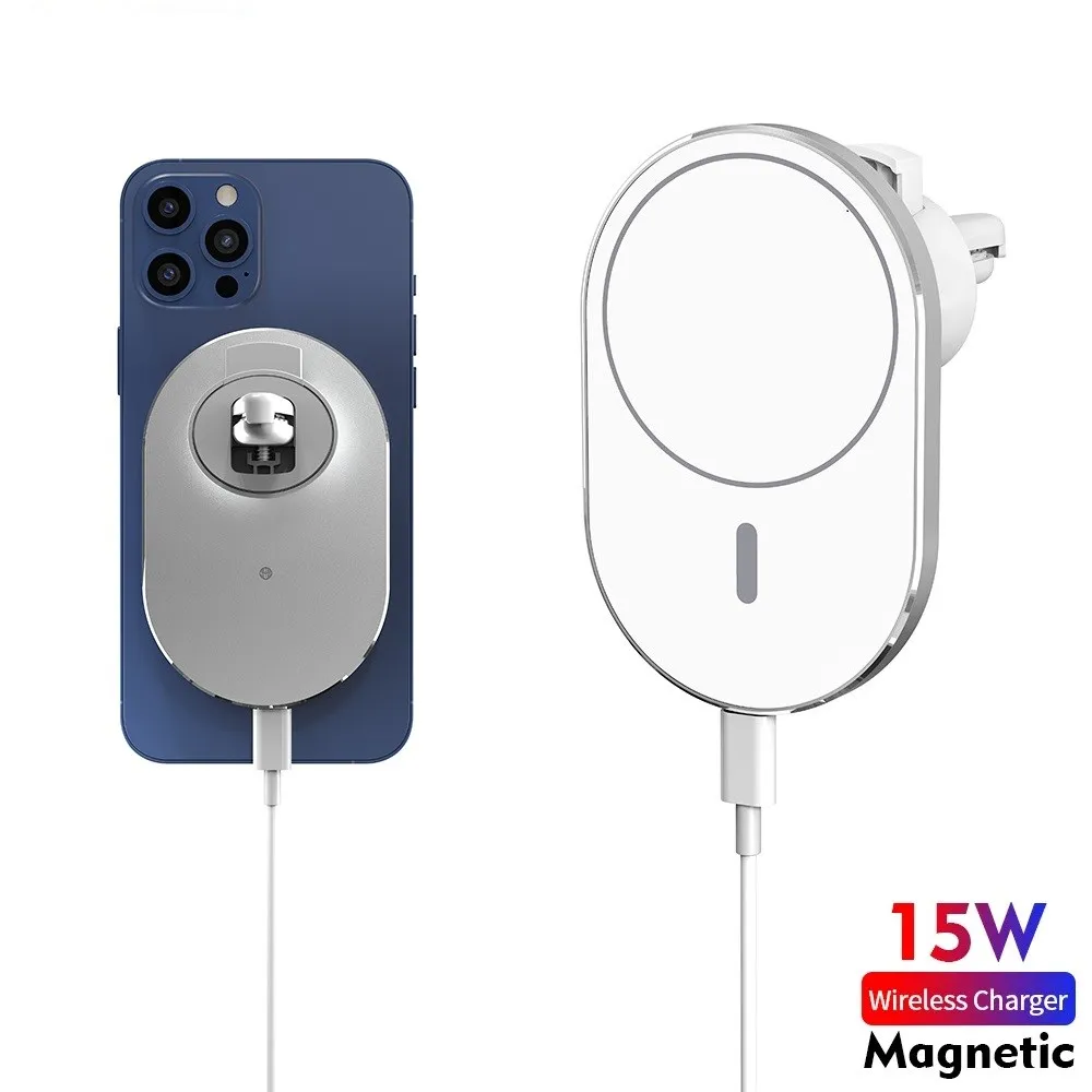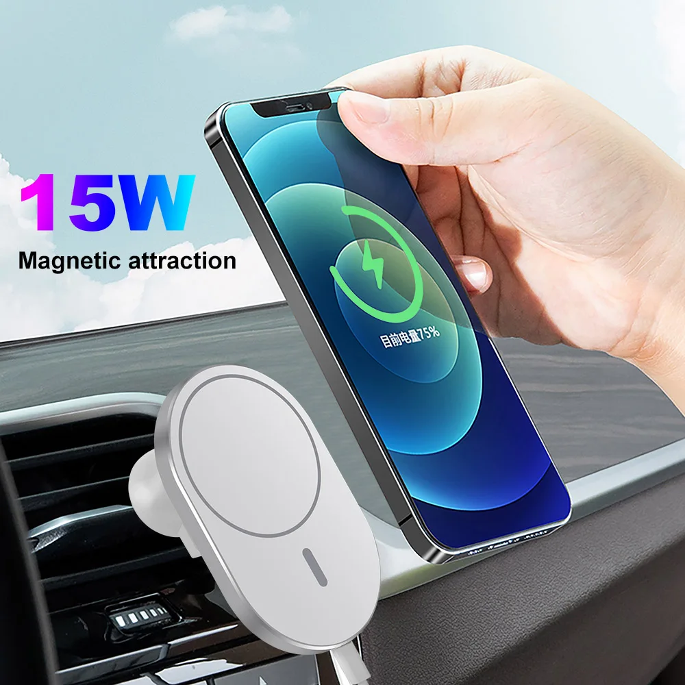 Автоматическая 15W магнитное беспроводное автомобильное зарядное устройство для iPhone 12 Pro Max 12 мини для Magsafe Автомобильный держатель для телефона на магните крепление, устанавливаемое на вентиляционное отверстие в салоне автомобиля кронштейн