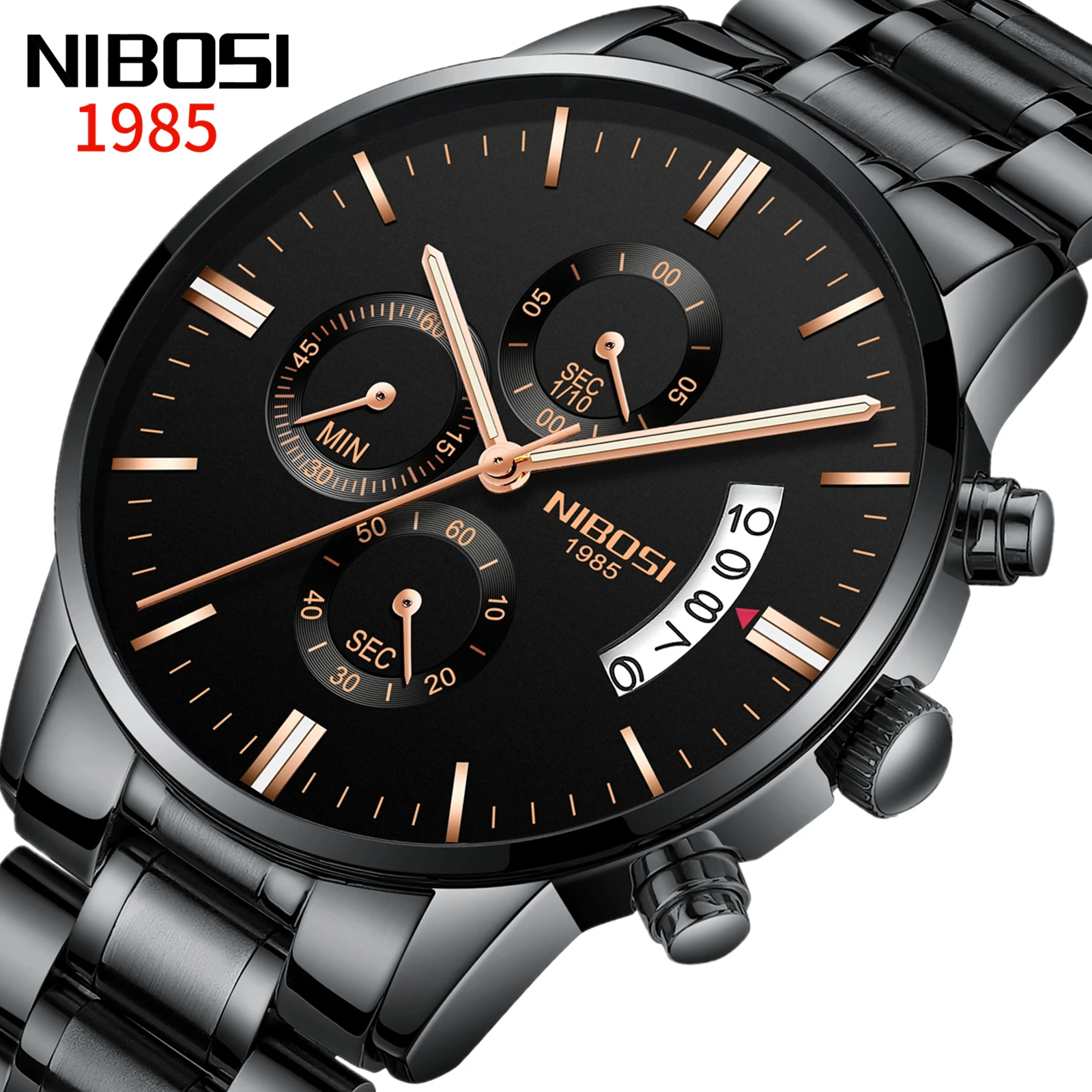 Мужские деловые часы NIBOSI Montres, черные, розовые, золотые роскошные кварцевые часы из нержавеющей стали, оптовая продажа, подарок на день рождения