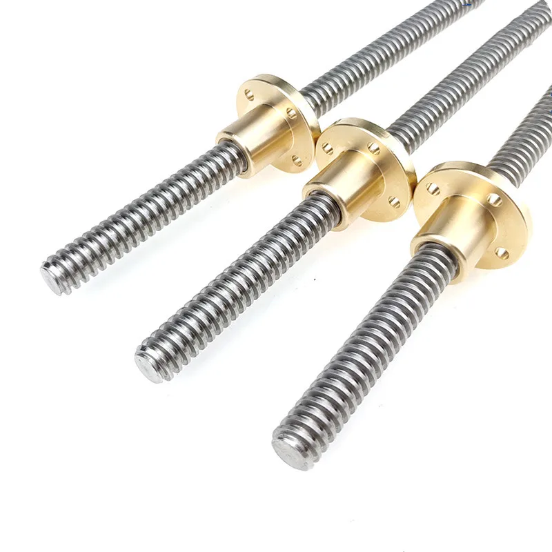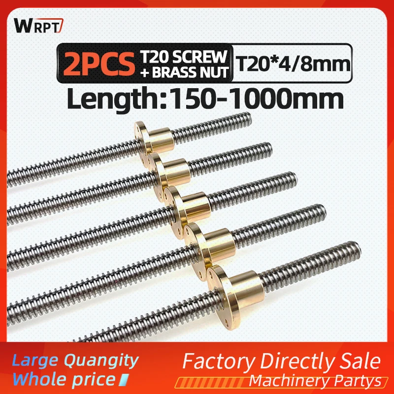 CNC 3D принтер 2 шт. T20 трапециевидный стержень, ведущий винт, резьба 20 мм, свинцовый 48 мм с латунной гайкой, L = 150 мм-1000 мм