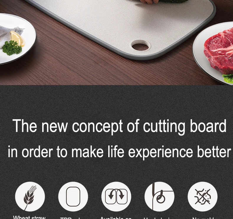 Разделочная доска ECOCO для кухни, двухсторонняя разделочная доска из натуральной пшеничной соломы без плесени, блок для измельчения фруктов, овощей, мяса