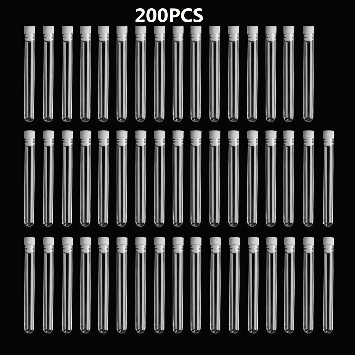 200 шт. прозрачная пластиковая пробирка с крышкой 12x100 мм, U-образная нижняя длинная прозрачная пробирка, лабораторные принадлежности