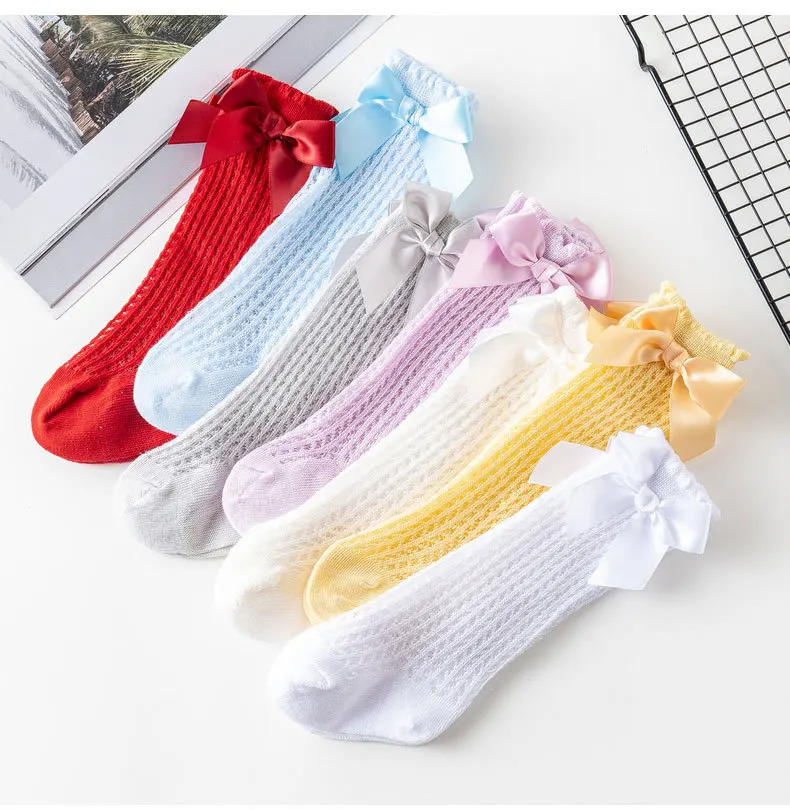 Новое летнее платье для маленьких девочек носки для детей ясельного возраста, с бантом, из хлопка, дышащие детские носки для новорожденных, сапоги до колена с длинными рукавами для младенцев, милые девушки носки 0-3Years