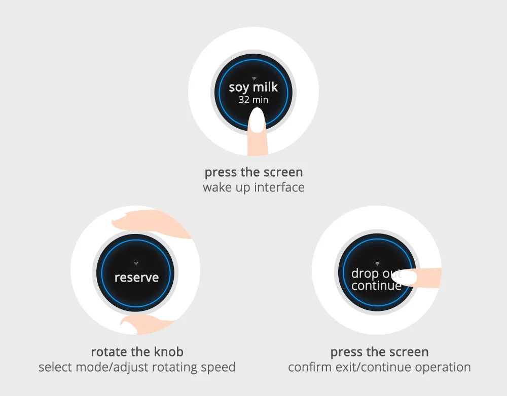 Минималистский дизайн взаимодействия интерпретирует простую эстетику жизни В сочетании со специальной интерактивной формой, экран oled-ручки добавлен для освобождения сложного дизайна интерфейса традиционной машины для приготовления сломанной стены, а наружная круглая основа поддерживает общий минимализм, гармоничный и унифицированный дизайн.